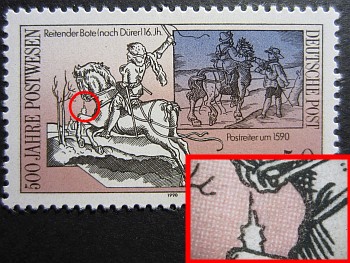 3355 d = rosafarbener Punkt am zweiten e von Reitender und schwarzer Punkt unten am U von DEUTSCHE