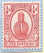 Es ist die einviertel-Pence-Marke, Michel-Nr. 57 der Freimarkenausgabe von 1910 in Stichtiefdruck, Farbe zinnoberrot der Turks- und Caicos-Inseln.