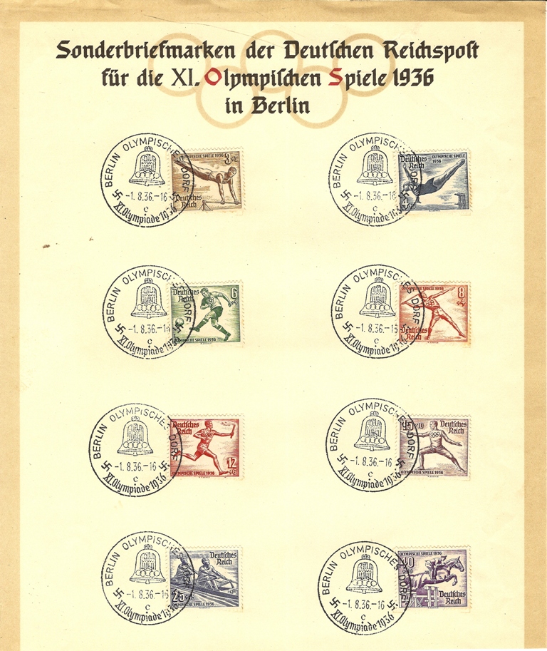 bei dem Stempel handelt es sich um den Stempel der Eröffnung der Spiele am 1.August 1936 , dieses Blatt ist nicht selten . Es gibt einige Sonerstempel der Olympiade z.B. Regattastrecke , Fahrendes Postamt , Olympisches Dorf , Olympiastadion und noch einige andere .