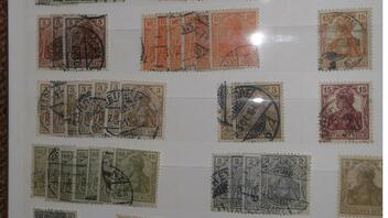Es sind Marken aus der Zeit von ca 1900 bis ca 1949 darin. Es war wohl mal ein Tauschalbum, weil viele doppelte Marken drin sind.