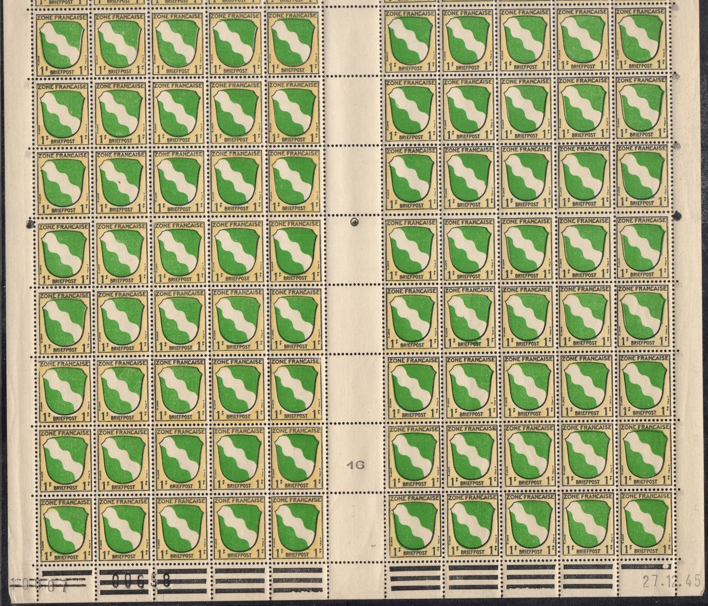 Mi.Nr. 1 - Korrigierte Bogen vom 27.12.1945 mit 1 bzw 3 Körnerschlägen ( punkte/Kreise im Balken oberhalb des Druckdatums.