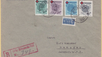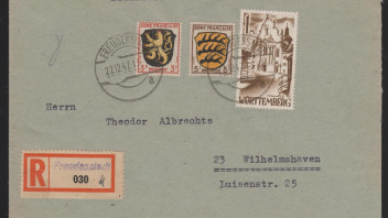 Von der französischen Zone gibt es auch einige Zwischensteg-Paare. Von den Mark-Werten Goethe, Schiller und Heine habe ich nur jeweils Einzelwerte mit Zwischenstegen gefunden. Kann jemand auch komplette Paare davon zeigen?Die 10-Pfennig-Marke scheint besonders selten zu sein, oft fehlt sie bei Angeboten des Satzes. Auch auf Briefen findet man ab und zu mal einen Zwischensteg.