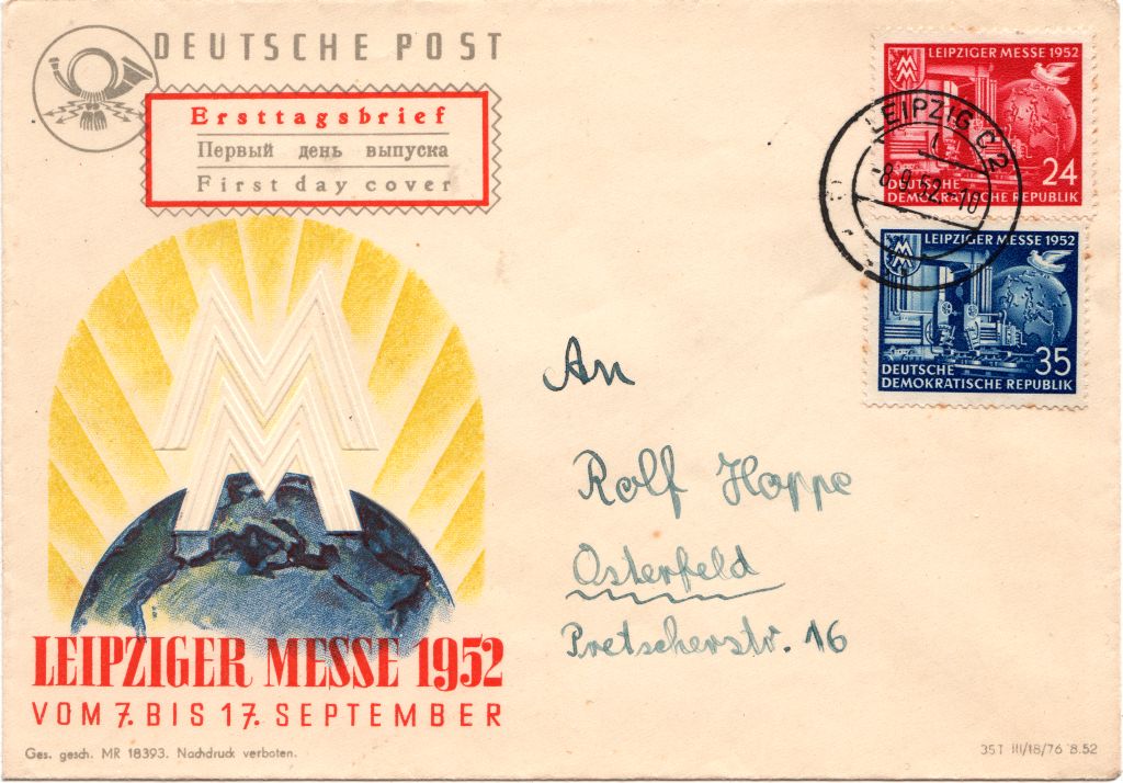 Vor allem auch bei dem Stempel im Vorbeitrag von 1958, da sieht man auch noch winzige Teile des Symbols "MM" von Leipziger Messe. Besseren Beweis braucht man dazu keinen mehr! ;)