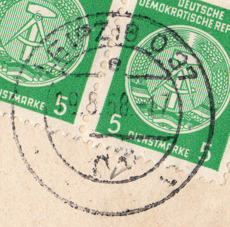heute hab ich mal wieder ein neues nachverwendetes und aptiertes Stempelgerät aus Leipzig. Ein Dienstbrief wurde über das Postamt LEIPZIG O 37 Kb e am 19.08.1958 abgefertigt.