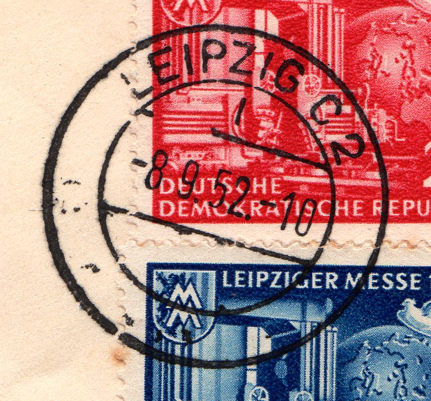 Vor allem auch bei dem Stempel im Vorbeitrag von 1958, da sieht man auch noch winzige Teile des Symbols "MM" von Leipziger Messe. Besseren Beweis braucht man dazu keinen mehr! ![]()