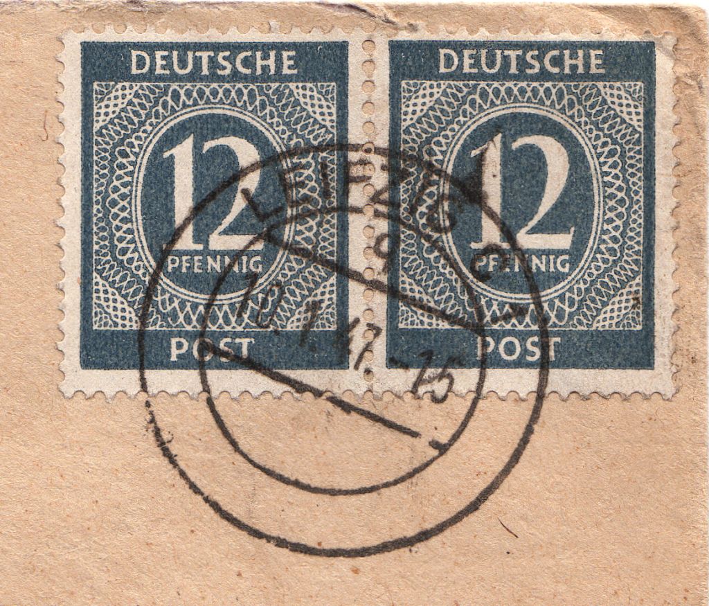 Mich würde interessieren, was Ihr von den Beleg haltet. Vom selben Postamt habe ich einen aptierten Stempel mit den Kennbuchstaben b vom 2.7.1948.