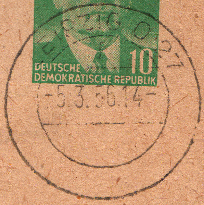 Hier erst mal ein aptierter Abschlag von (10) Leipzig O 5 Ub h vom 01.07.1951. Wenn ich richtig liege wurde der Stempel bisher noch nicht gezeigt.