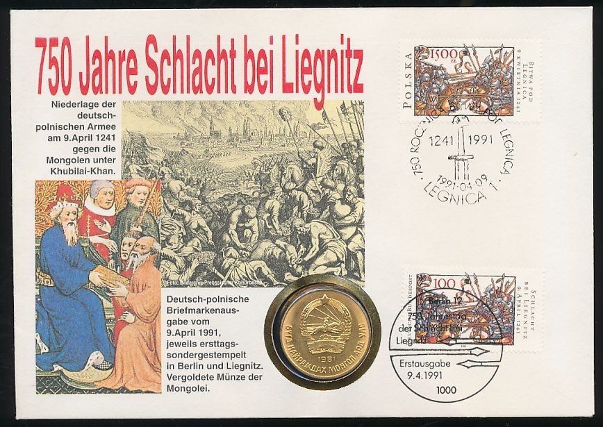 Zum 750. Jahrestag der Schlacht bei Liegnitz gab es eine gemeinsame Ausgabe mit Polen (Bund Michel-Nr. 1511 und Polen Mi.-Nr. 3318). Sogar ein Kombi-Numis-Brief wurde damit verausgabt: