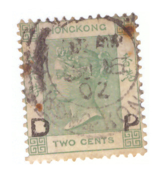 D P bedeutet (Hong Kong) Daily Press. Es handelt sich um einen privaten Aufdruck dieser englischsprachigen Zeitung aus Hongkong, dieser Aufdruck sollte verhindern, daß Mitarbeiter der Zeitung diese Briefmarken privat verkaufen oder sie bei der privaten Korrespondenz verwenden. Andere Firmen ließen ihre Briefmarken lochen (Perfins!), um Diebstähle zu verhindern, die Daily Press hat sie statt dessen mit einem Stempel versehen.
