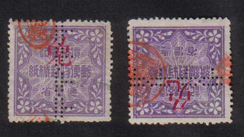 hab hier eine Chinesische Marke mit Perfin, kann einer weiterhelfen ob das Schriftzeichen sind oder dergleichen, eventuell auch Vignette?