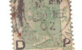D P bedeutet (Hong Kong) Daily Press. Es handelt sich um einen privaten Aufdruck dieser englischsprachigen Zeitung aus Hongkong, dieser Aufdruck sollte verhindern, daß Mitarbeiter der Zeitung diese Briefmarken privat verkaufen oder sie bei der privaten Korrespondenz verwenden. Andere Firmen ließen ihre Briefmarken lochen (Perfins!), um Diebstähle zu verhindern, die Daily Press hat sie statt dessen mit einem Stempel versehen.