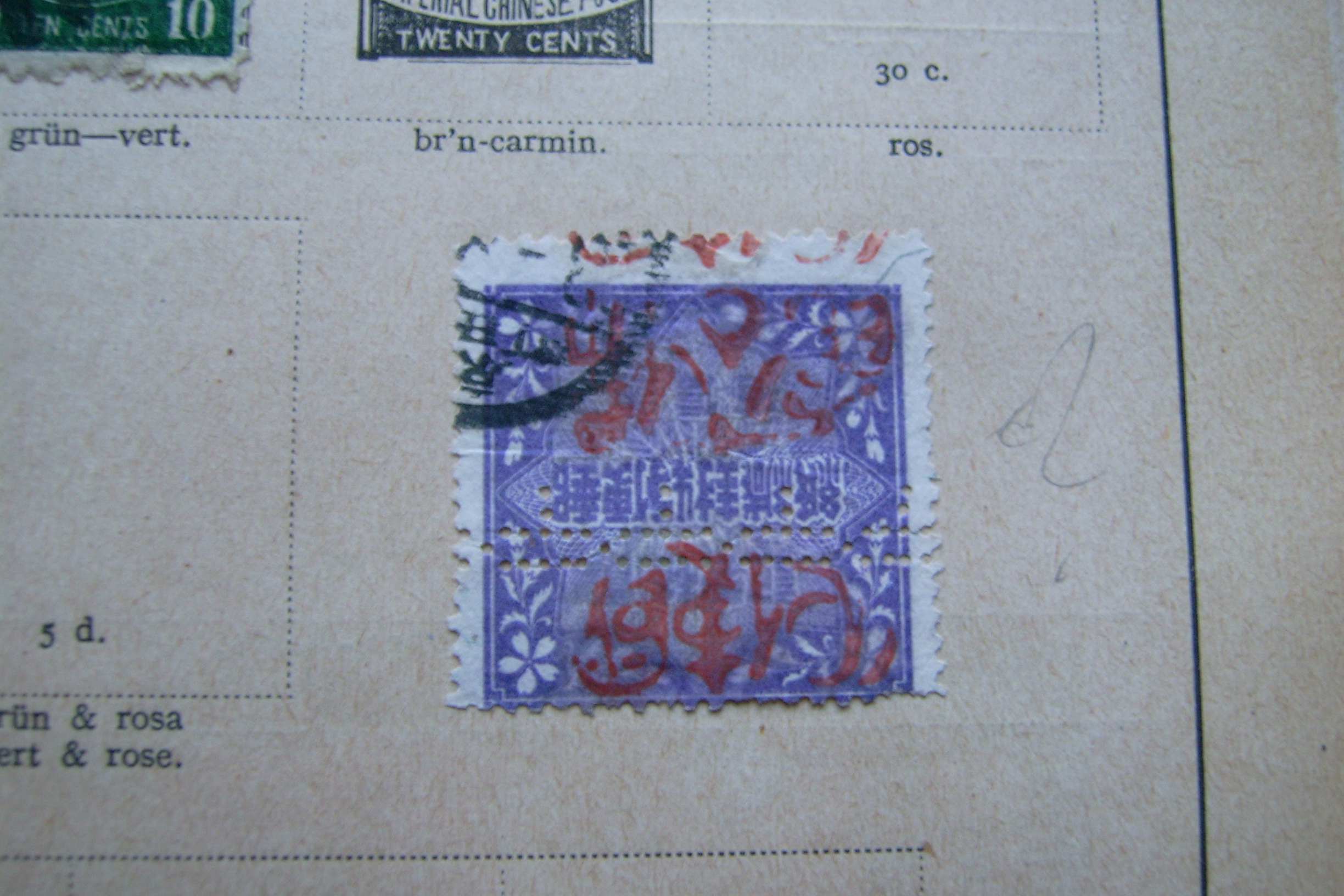 hab hier eine Chinesische Marke mit Perfin, kann einer weiterhelfen ob das Schriftzeichen sind oder dergleichen, eventuell auch Vignette?