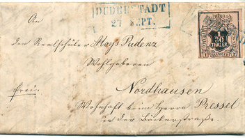 Brief von Duderstadt nach Northausen vom 27.9.1852 mit Hannover 3a.