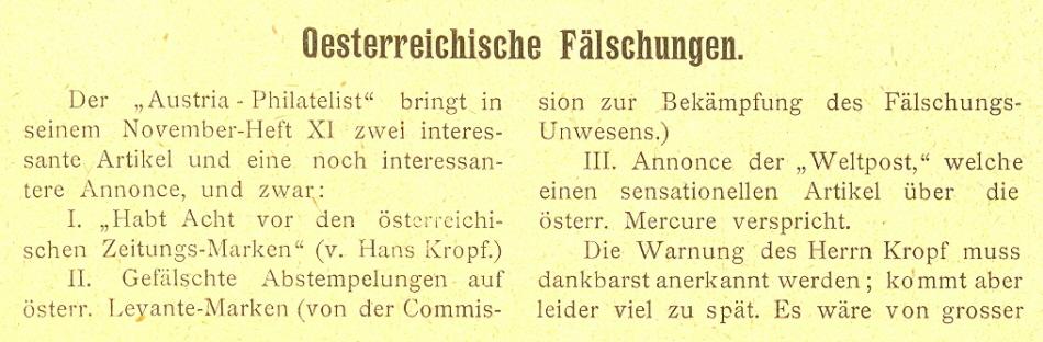 Zum Unterschied zu den Freimarken wurde nur in Ausnahmefällen die Marke am Aufgabepostamt entwertet. Die Regelung war, dass das Ankunftspostamt die Entwertung durchzuführen hatte. Jeder Verlag hatte seine eigenes zugewiesenes Postamt und dorthin hat er die Zeitungen frankiert, sortiert nach Versandorten und mit Schleifen verpackt abzuliefern.
