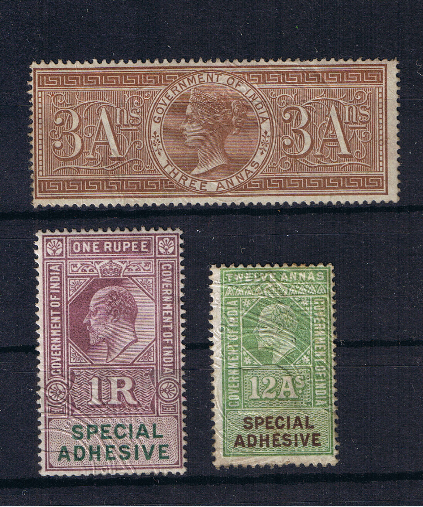 Die Inschrift "Government of India" sowie die Stempelinschrift "Stamp Office" lassen auf eine Stempelmarke (Fiskalmarke) des Staates schließen. Indische Briefmarken tragen die Inschrift "India Postage" oder India Postage & Revenue".