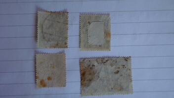 Ok, jetzt verstehe ich um wass es geht. Den artikel werde ich noch durchgehen. Auf dem Bild sind meien Marken die seher betrofen sind. Die zwei germania und die grose sind nicht so viel wert glaube ich,die konnte ich nou beschafen. Aber die orange ist eine der altesten die ich habe und ich will sie nicht wek verfen. Wenn sie am trockenen lieg wird sich der Fleck nicht ausbreiten oder doch !! Wenn eine den wert der zwei germania weiss,dan bitte soll er den wert angeben!