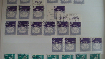 Ich zeige solange kleine Ausschnitte aus dem nächsten Zonen-Album, Gemeinschaftsausgabe Aliierte Besetzung. Hier hab ich noch viel Arbeit vor mir, mit meinem derzeitigen System bin ich irgendwie nicht zufrieden. Für das Gebiet habe ich ganze 3 64-Seiten Alben, eines für gestempelte Standardmarken, eines für postfrische un dieses mit allerlei Besonderheiten, also Farben, Randvermerke, Einheiten (mit Rand), Plattenfehler und sonstige kleinere "Besonderheiten" wie etwa fehlende Zähnungslöcher oder sonstige Druckzufälle. Irgenwie gefällt mir das aber so nicht, ich überlege, es umzustellen auf ein System wie bei der Bizone, also eine Nummer nach der anderen (nach Spezial, also mit Farbvarianten). Dann müsste ich aber wieder die anderen Stücke unterbringen, also bräuchte ich ein zusätzliches Album für Plattenfehler und Besonderheiten, da könnte ich ein 64-Seiten Album nehmen und pro Nummer eine Seite reservieren.