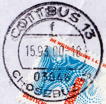 der Abdruck, kein Originalabschlag, stammt ursprünglich aus einer Arbeit des verstorbenen Eduard Fiege (FG Berlin), zum Thema Stempelformen-Stempelnormen. Später auch aufgenommen in ein Werk zu den zweisprachigen Tagesstempeln im deutsch-sorbischen Sprachraum ab 1.7.1993.