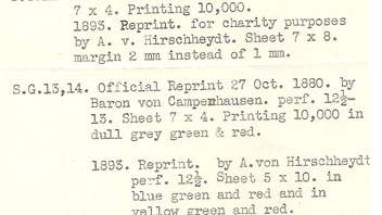 In Deinen 3 Schriftstücken ist nur von Forgeries (=Fälschungen), Nachdrucken und Neudrucken die Rede. Wenn diese Schreiben bei Deinen Marken waren, wird es sich bei diesen wohl um keine seltenen und teuren Originale handeln. Der Michel hat auch Preise für den amtlichen Camphausener Nachdruck von 1880 von neuen Platten aufgeführt. Welchen Wert die anderen Nach- und Neudrucke haben, weiß ich nicht.