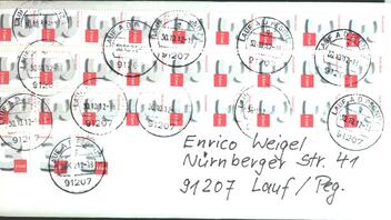 Wenn man dann noch die weißen Ränder abschneidet, so daß die zwei Dreier zusammenfinden und ein neues Muster ergeben, würde es noch interessanter aussehen. Aber ob die Marken dann auch noch gültig sind und ob die Post so eine Verstümmelung auch gerne sieht ![]()