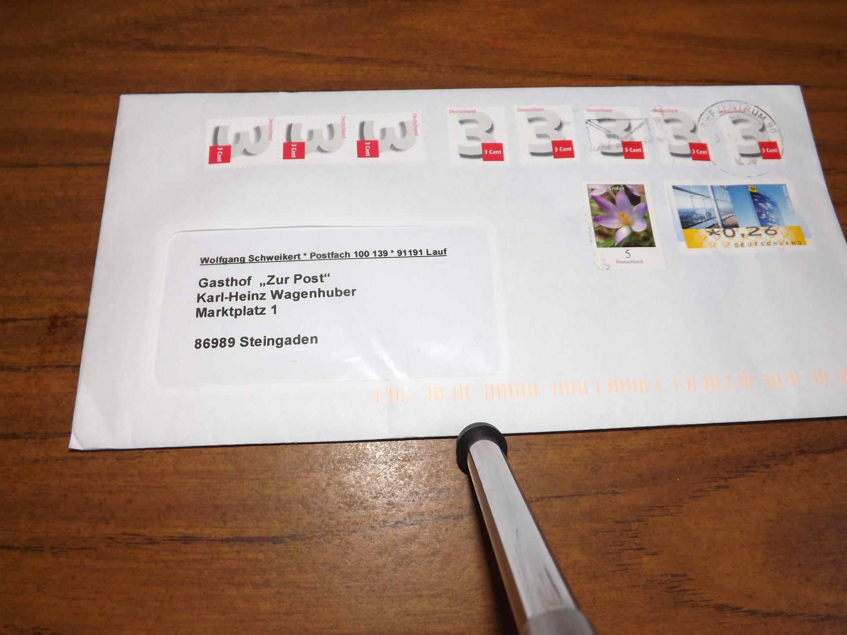 Bei Bernd habe ich den Beleg absichtlich in diesen Briefkasten geworfen um zu sehen welcher BZ - Stempel verwendet wird und ob über die Restmarken nochmal manuell abgenudelt wird. ;) Sorry Bernd :ups: