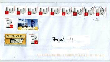 BuntF mit einer Frühverwendung der 3 Cent-Marke, einer Spätverwendung der legendären Philaforum-Vignette und bezeichnend für das heutige Post(un)wesen die doppelte Entwertung.