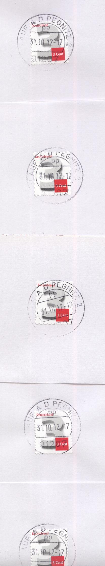 Wenn man dann noch die weißen Ränder abschneidet, so daß die zwei Dreier zusammenfinden und ein neues Muster ergeben, würde es noch interessanter aussehen. Aber ob die Marken dann auch noch gültig sind und ob die Post so eine Verstümmelung auch gerne sieht ![]()