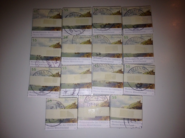 Ich habe gefallen am Ablösen der Marken gefunden und damit die Marken nicht so rumfliegen habe ich sie alle gebündelt. Ich weiß nicht warum aber die Sondermarken haben einen gewissen Reitz für mich und ich würde Sie am liebsten den ganzen Tag ablösen und Bündeln. In der Zukunft werde ich allerdings auf Stempel bzw. Postzentren achten.