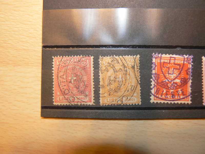 Es gab spezielle "Marken" für italienische Consulate im Ausland, für jedes Land eine besondere oder auch mehrere, das waren die runden Siegelmarken. Auch ausländische Konsulate in Italien hatten eigene Siegelmarken, hauptsächlich in Rom natürlich, aber ab und zu auch in anderen größeren Städten Italiens.