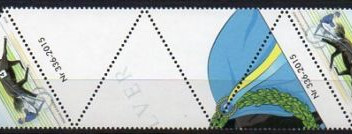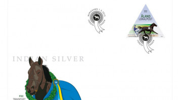 Am 1. Mai 2015 erschien auf den zu Finnland gehörenden Aland-Inseln eine ungewöhnliche dreieckige Marke zu Ehren des bekanntesten Traberhengstes "Indian Silver" des Landes. Besonders attraktiv anzusehen ist wohl ein kompletter Schalterbogen dieser Ausgabe mit Kehrdruck-Paaren und bedruckten Zierfeldern. Leider habe ich im ganzen Internet keinen dieser Schalterbogen gefunden, nur eine kleine Teilabbildung davon. Der Aufdruck Lokalpost bedeutet nur, daß diese Marke nur innerhalb der Insel verwendet werden konnte.