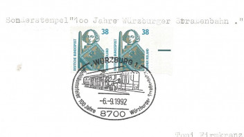 Sonderstempel 100 Jahre Straßenbahn Würzburg.