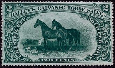 Eine Gebührenmarke für medizinische Patente (Pferdesalbe).