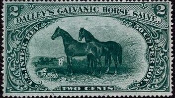 Eine Gebührenmarke für medizinische Patente (Pferdesalbe).