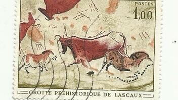 Hier einmal eine Sondermarke aus Frankreich mit einer uralten Steinzeitzeichnung aus der Höhle von Lascaux , u.a. mit Motiven von Wildpferden.