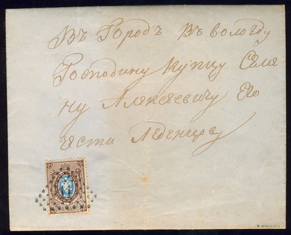 Dieser Brief lief von GORIZK im Gebiet Pleskau nach Libau - die Marke mit dem Stempel Nr. "91" entwertet. Eingeführt wurde diese Nummer am 25.7.1859.