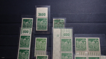 Z. B. der Walzendruck-Unterrand auf dem Scan ( v.r rechts : a, b, b?, 232 ), 2. von links hat deutlich mehr Oliv-Anteile als andere 244 Marken - so dass man aufgrund der Michel-Bezeichnung grünoliv meinen könnte, es sei die Farbe c - Ein Vergleich mit der 232 sorgt dann für die Klarheit. Das hilft ungemein.