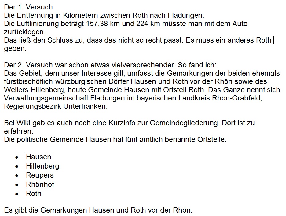 Google ist wirklich nicht immer das beste Mittel, um sich zu informieren. Eine gut sortierte Bibliothek ist da oft viel besser. In "Müllers großes deutsches Ortsbuch, Ausgabe 1996" sind insgesamt 31 verschiedene Roth in Gesamtdeutschland aufgeführt. Das Roth, das zur Gemeinde Hausen gehört, hatte damals 175 Einwohner; als Postleitzahl wird 97647 angegeben. Insgesamt also ein kleines Dorf.