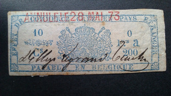 Dieser seltsame Papierfetzen aus Belgien von 1870 soll eine Fiskalmarke sein. Wenn man "Effet de Commerce" von Google übersetzen läßt, kommt dabei "Handelsrechnung" heraus.