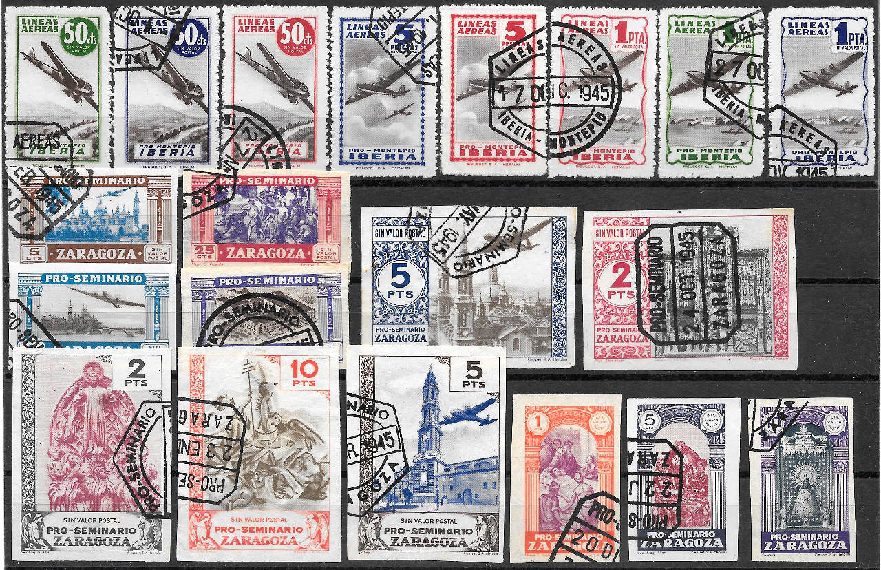 Die "Pro-Seminario" Zaragoza-Marken wurden wohl in und nach dem Spanischen Bürgerkrieg von einem Pater Sancho herausgegeben, um Spenden für ein Priesterseminar zu sammeln.