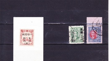 Die beiden anderen Marken sind aus der Chinesischen Republik (1912 -49), beides relativ häufige Marken, wobei das nette Oberrandstück mit dem Druckvermerk (Teil davon) einen deutlichen Aufschlag verdient.