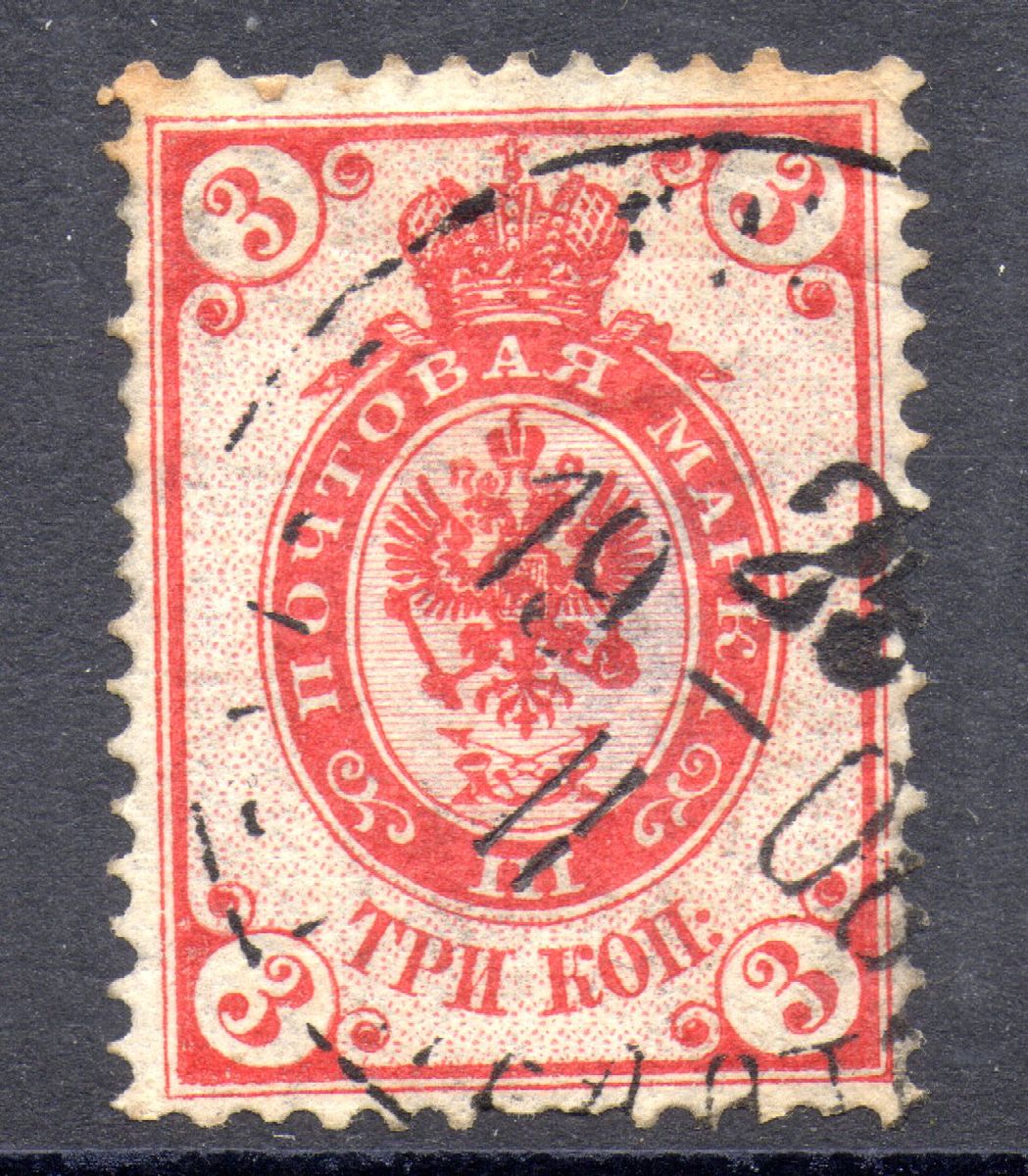 Ich will auf das eingehen, was man dort nicht nachlesen kann. Es geht um die Wappenmarken der Ausgaben 1864 - 1875, genauer gesagt um die 1-, 3-, 5-Kopekenmarken sowie die 2-Kopekenmarke Michel-Nr. 24 vom 18.6.1875. Möglich macht diese Besonderheit der zweifarbige Druck. Dabei wurde zunächst ein farbiger Unterdruck aufgetragen. Anschließend wurde der Rahmen mit den Ziffern der Wertangabe in den vier Ecken sowie ein gekröntes Mitteloval mit doppelköpfigen Adler gedruckt. Diese Druckreihenfolge wurde teilweise vertauscht, da bei einigen Bögen der Unterdruck fehlte. Das Papier war nicht gerade billig. Daher wurde der Unterdruck dann auf den Rahmen gedruckt.