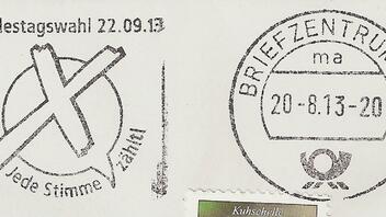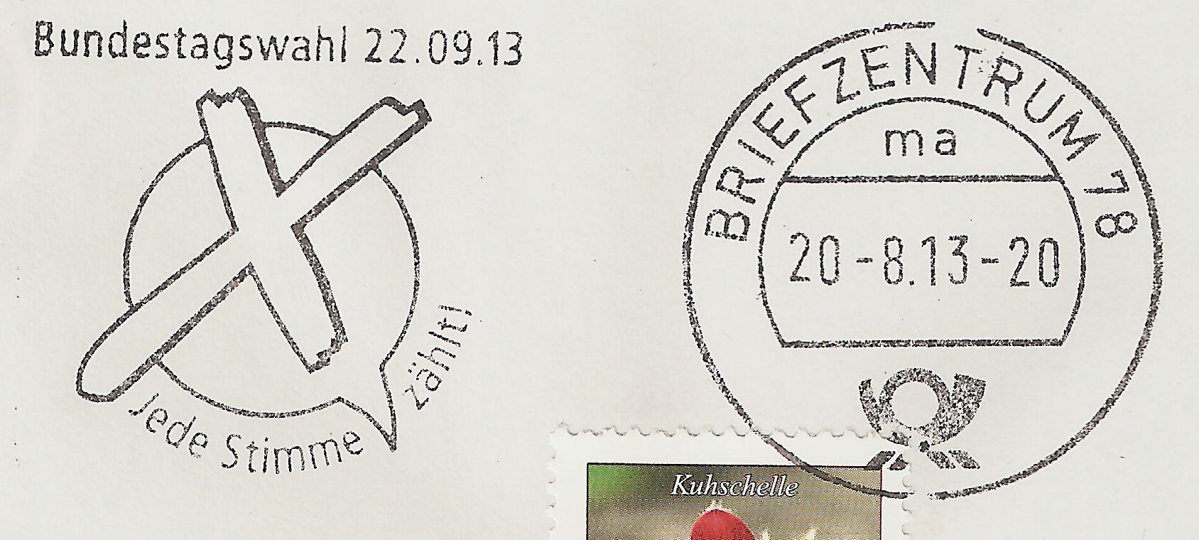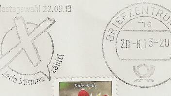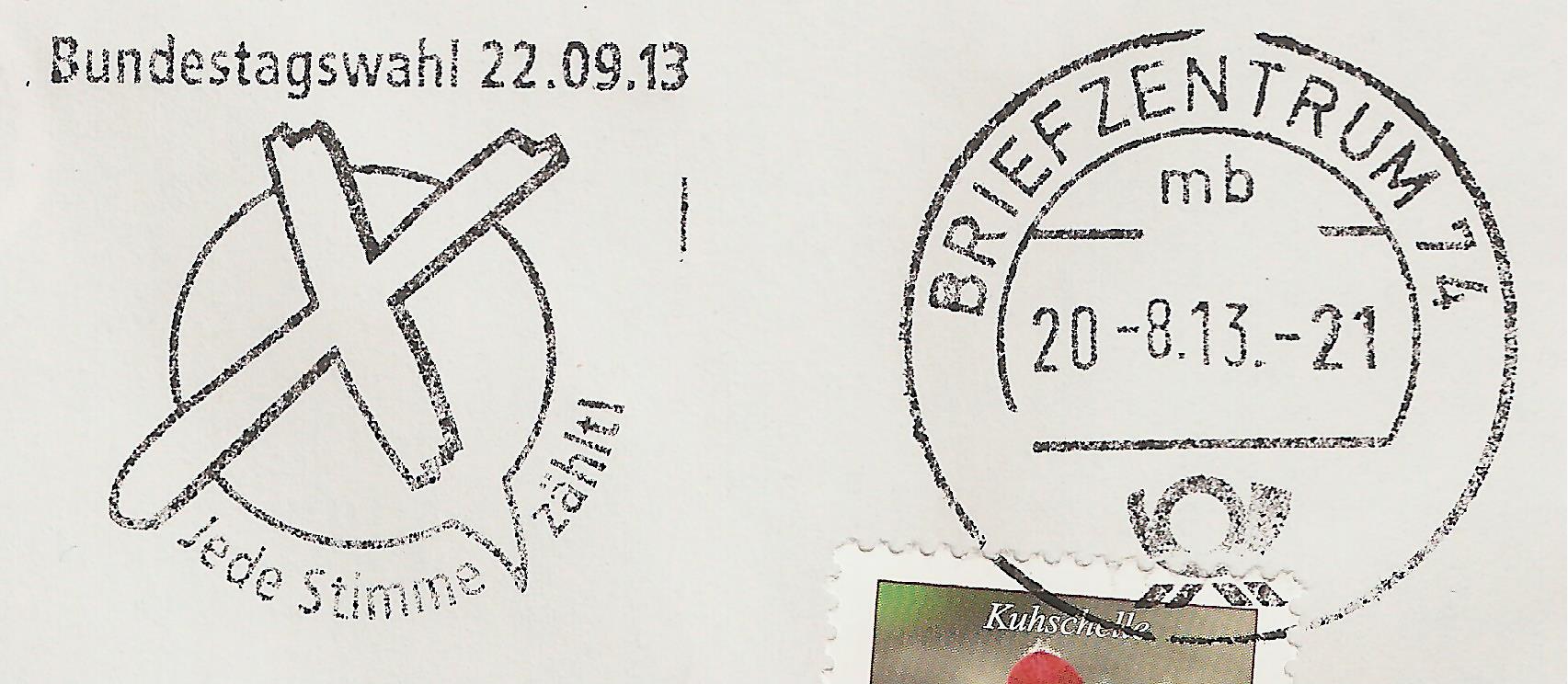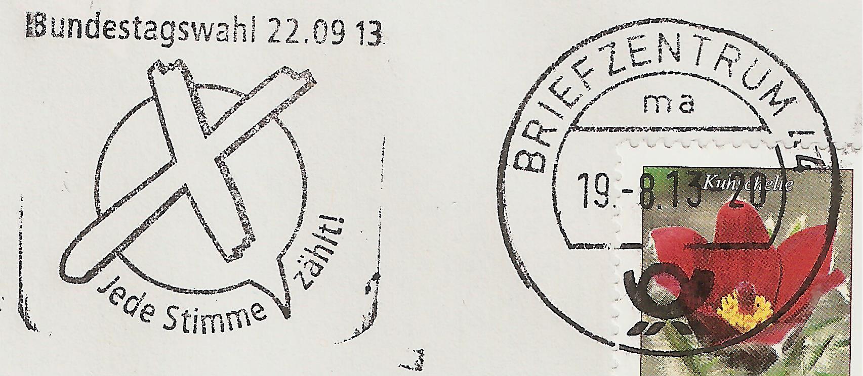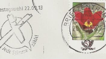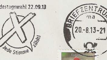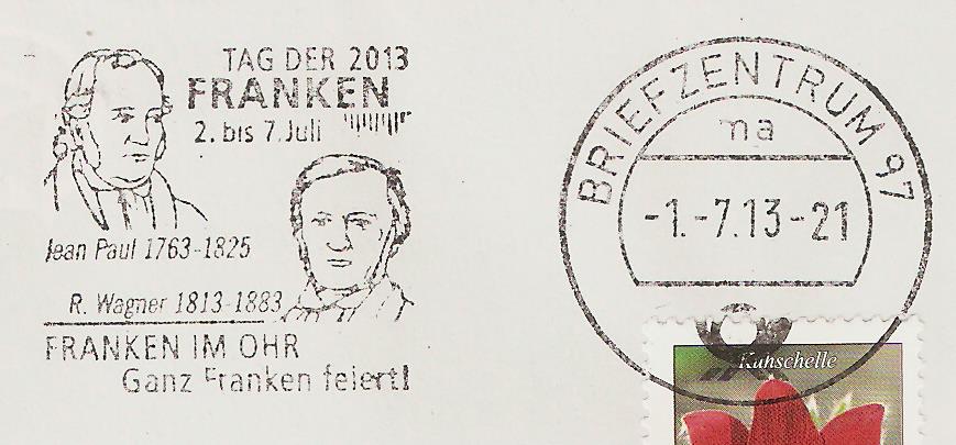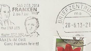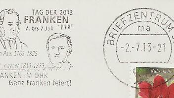 Zum Tag der Franken 2013 (diesjährig dezentral -es gibt Veranstaltungen in über 100 Gemeinden in allen der drei fränkischen Bezirke) haben drei Briefzentren gleiche Werbeklischees im Einsatz.