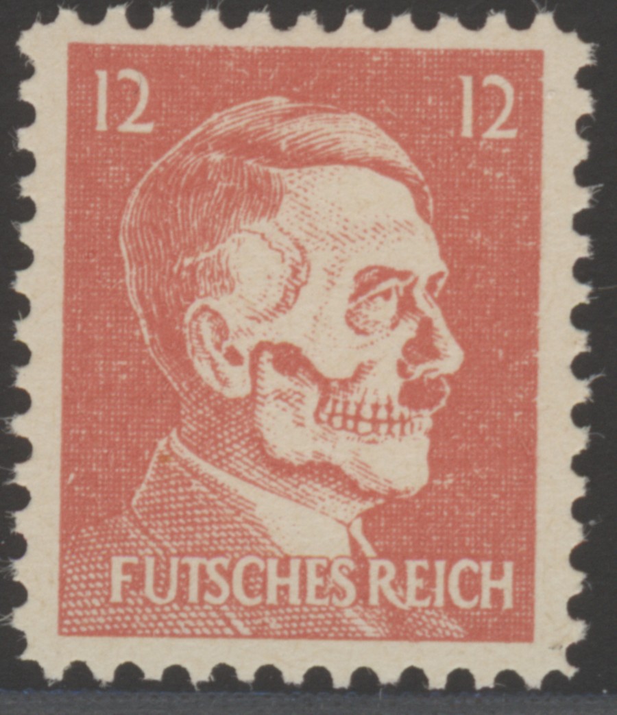 Und noch die Mi.Nr. 17, Amerikanische Propaganda - Fälschung für das Deutsche Reich im Buchdruck mit Linienzähnung ähnlich der DR Mi.Nr. 788. Die Zeichnung wirkt "etwas" kriegerisch, auch bezeichnet mit "Hitler - Totenkopf".