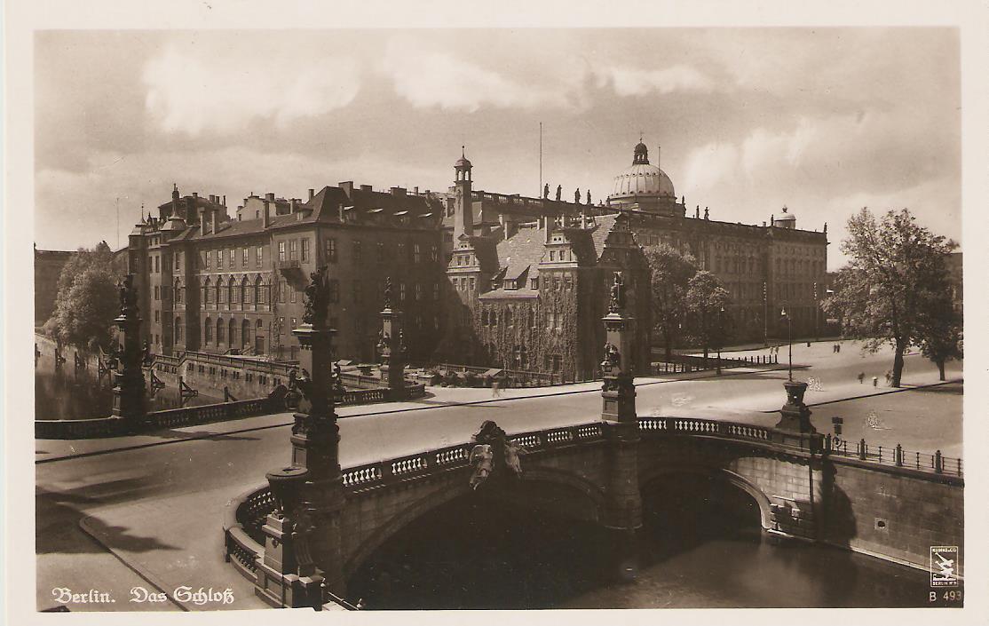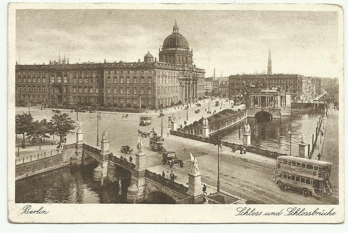 Hier eine Litho mit der Totale auf Stadtschloß und Dom aus östlicher Blickrichtung. Die Karte dürfte 1908 entstanden sein und ist im Januar 1909 von Berlin nach Hamburg gelaufen.