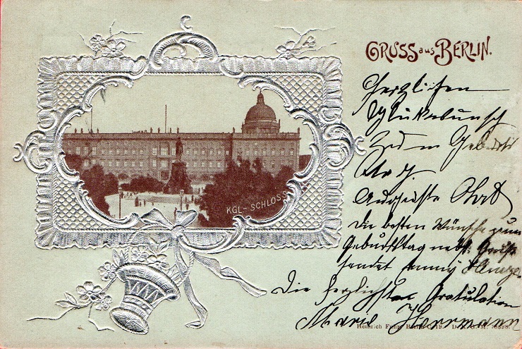 Hier noch eine Karte mit dem beliebten Blick vom Alten Museum, über den Lustgarten zum Schloss.
