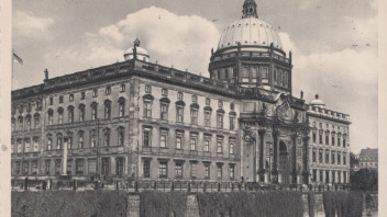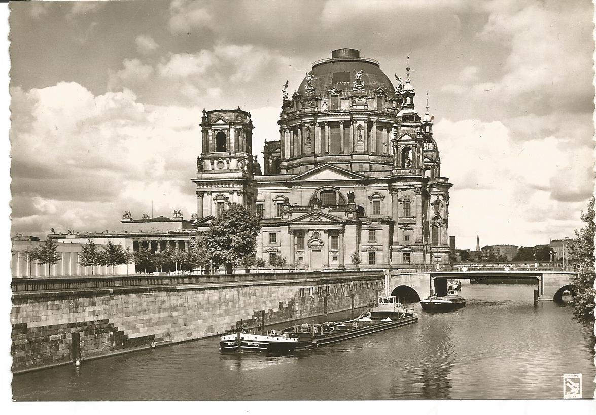 Kein Stadtschloß mehr. Der Platz, auf dem einst das Berliner Stadtschloß stand, ist bis auf einen Ausstellungspavillion im sowjetischen Stil und ein paar Bäumchen weitgehend leer. Im Hintergrund sieht man die "Karl-Liebknecht-Brücke" und den notdürftig wieder zusammengeflickten Berliner Dom.