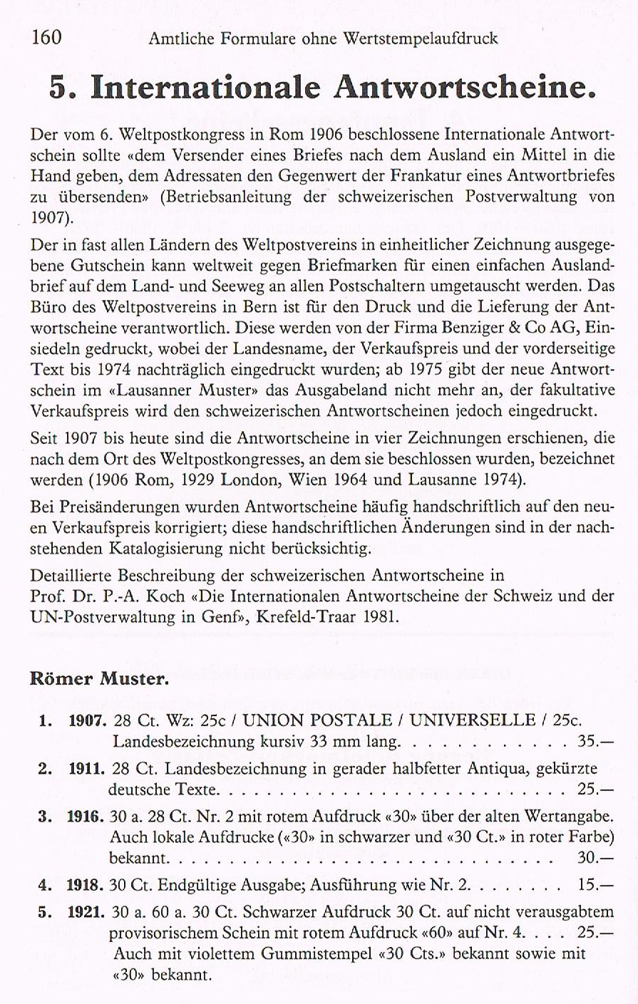 auch ich kann leider Deine speziell schweizer Frage nicht beantworten, mein alter Zumstein enthält leider keine Ganzsachen unter denen in der Regel die Antwortscheine aufgeführt sind.