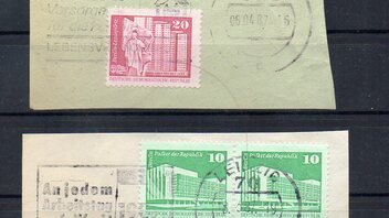 Auch in der DDR wurden - zumindest in den Anfangsjahren - noch sehr häufig Bandstempel eingesetzt. Folgende Stempelarten kann ich hier nachweisen: