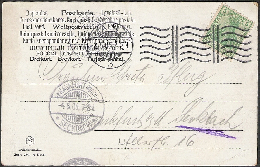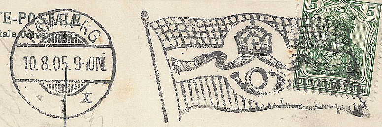 Dieses schöne Hamburger Stück konnte ich heute auf einem Berliner Flohmarkt ergattern. Flaggenstempel Hamburg 1 vom 29.12.1903, Kreisobersegmentstempel Mittenwalde-Mark vom 30.12.03 als Ankunftsstempel.