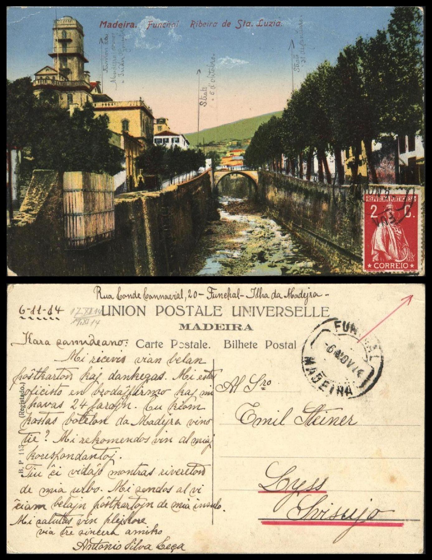Der Kartentext der zwar frankierten aber ungelaufenen Karte ist leider nicht sehr aussagekräftig: Madeira Queda de agua heißt nichts anderes als "Madeira Wasserfall"